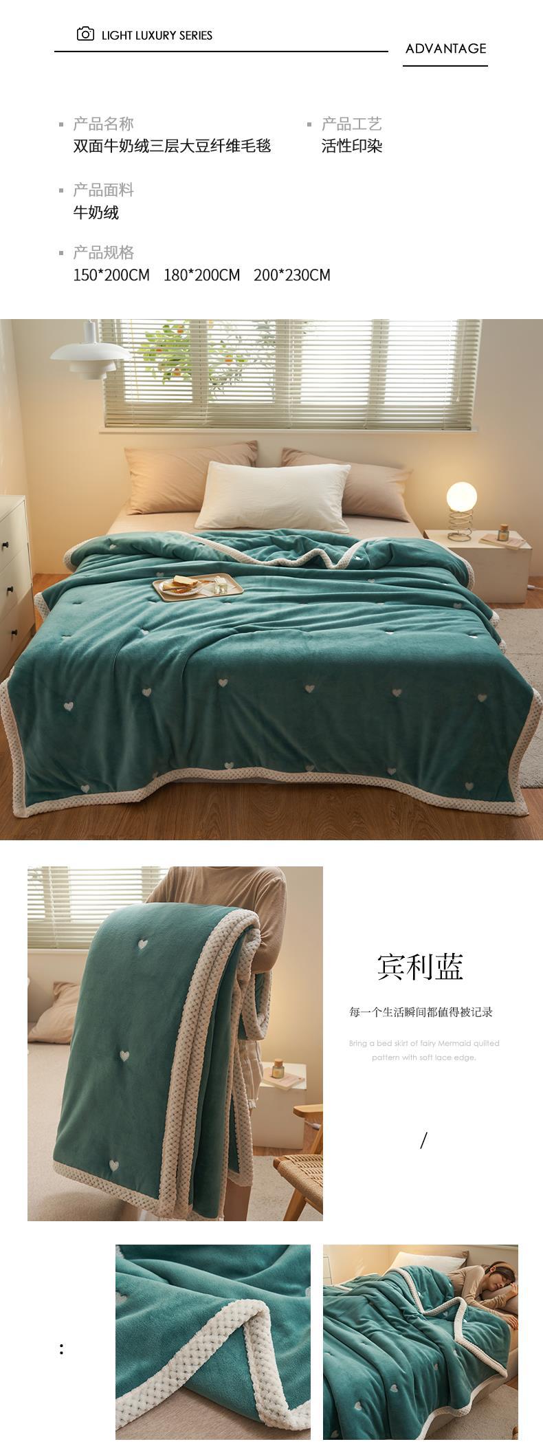 Double sided milk wool blanket, three layers thickened, single and double persons, spring and autumn, winter, coral quilted blanket for students